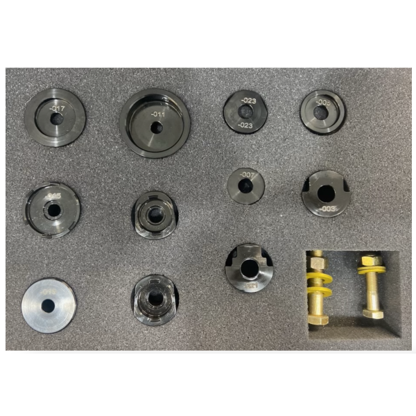 Description: Custom bearing staking kit featured in Pelican case. Part numbers that are included in the kit: -005 Backup Plate, -017 Backup Plate, -023 Backup Plate, -009 Staking Tool, -015 Staking Tool, -025 Staking Tool -013 Driver, -007 Driver -003 Cup (Bearing Removal), -011 Cup (Bearing Removal), -021 Cup (Bearing Removal) Also Hardware NAS6606-277 Bolt, AN315-6 NUT, NAS1149C0663R WASHERS, NAS6605-22 BOLT, AN315-5 NUT, NAS1149C0563R WASHERS Tags: -005 Backup Plate, -017 Backup Plate, -023 Backup Plate, -009 Staking Tool, -015 Staking Tool, -025 Staking Tool -013 Driver, -007 Driver -003 Cup (Bearing Removal), -011 Cup (Bearing Removal), -021 Cup (Bearing Removal) Also Hardware NAS6606-277 Bolt, AN315-6 NUT, NAS1149C0663R WASHERS, NAS6605-22 BOLT, AN315-5 NUT, NAS1149C0563R WASHERS, 12345-032-B, 12345-032-001, 085-060-030-500